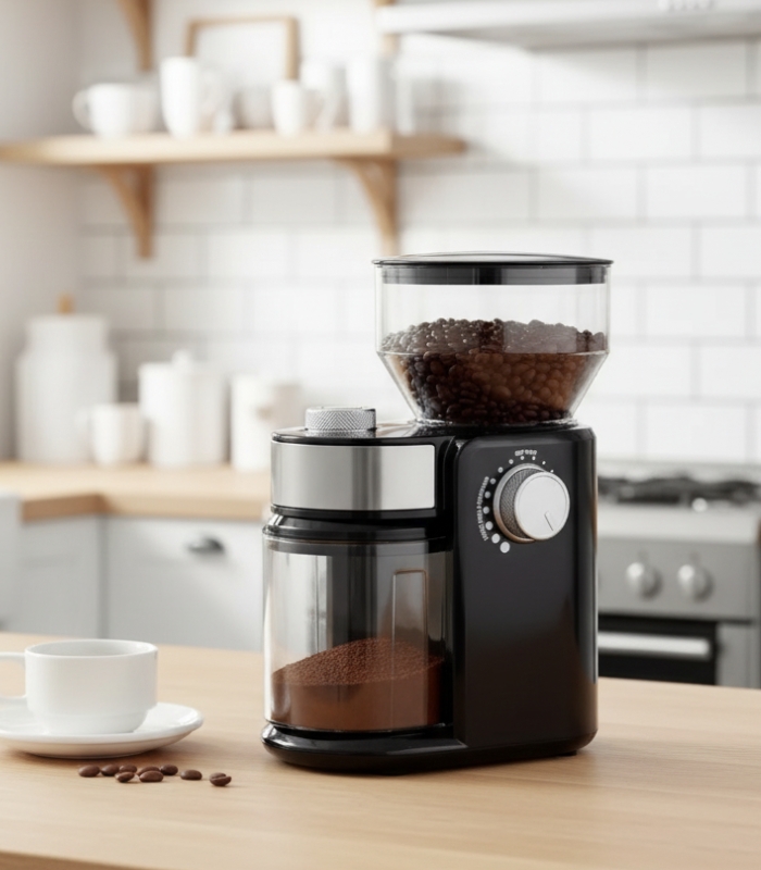 This grinder works well for someone upgrading from a blade grinder who wants better consistency, households that brew for multiple people, or anyone who values convenience features like the automatic cup selector and transparent hopper. At 1.2kg, it’s light enough to move but heavy enough to stay stable during grinding. The dual safety lock ensures the motor won’t run with parts removed, preventing accidents and motor damage.