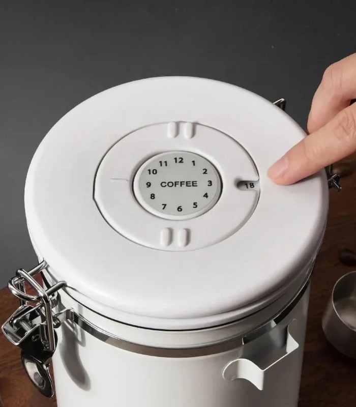 • Date Tracker Dial: Rotating dial on the lid records roasting or opening dates, helping you monitor freshness and use beans at their peak flavour.
