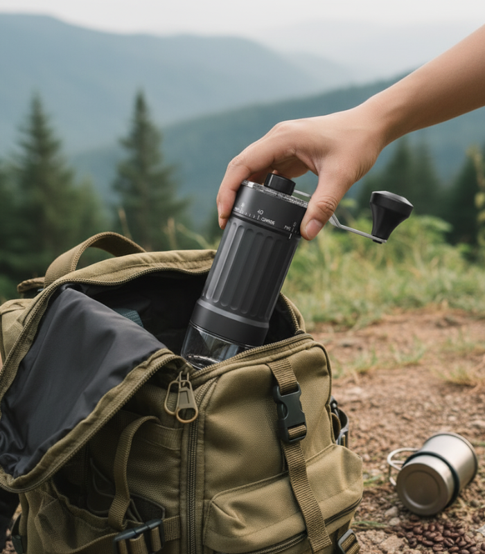 Experience the art of freshly ground coffee with our Manual Coffee Grinder featuring premium ceramic burrs and 40 precise grinding levels. Designed for coffee enthusiasts who value quality and convenience, this portable hand grinder delivers consistent results whether you’re brewing espresso, pour-over, or French press. The innovative external adjustment system lets you switch between grind sizes without disassembly, keeping your grinder clean and ready for daily use. Compact and lightweight at just 320 grams, it’s your perfect companion for home brewing, office coffee breaks, camping trips, or travel adventures.