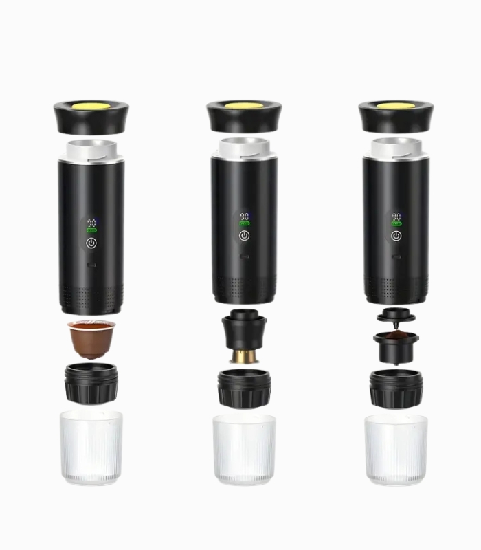 Brew café-quality espresso anywhere with our Portable Espresso Coffee Machine. Featuring a smart digital display and powerful 20 bar pressure extraction, this rechargeable 3-in-1 machine works with ground coffee, Nespresso capsules, and Dolce Gusto capsules. Perfect for travel, camping, office, or home, it delivers rich, flavorful espresso with a beautiful crema layer. The intelligent LED display shows real-time temperature, extraction time, and battery level, giving you complete control over every shot. Whether you prefer hot espresso or refreshing cold brew, this compact machine brings professional results to any location.