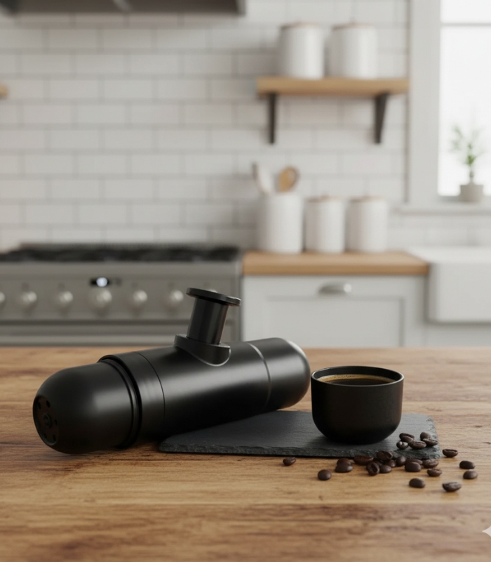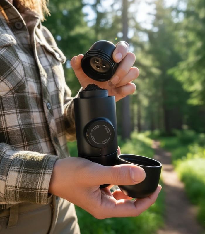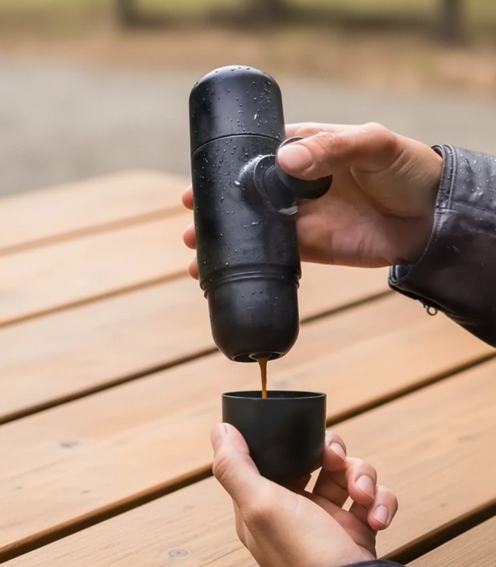 Enjoy rich espresso anywhere with our Portable Espresso Maker. This lightweight, manual coffee press requires no electricity or batteries—just hot water and your favorite ground coffee. Perfect for camping trips, hiking adventures, office use, or hotel stays, this compact espresso maker fits easily in your backpack or luggage. The simple hand-press mechanism creates authentic espresso pressure, delivering café-quality shots wherever your travels take you. At just 187.5 grams, it’s one of the most portable espresso solutions available.