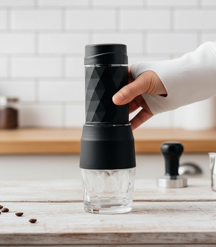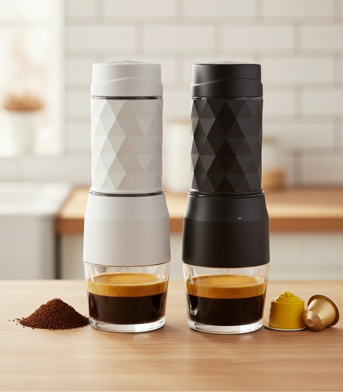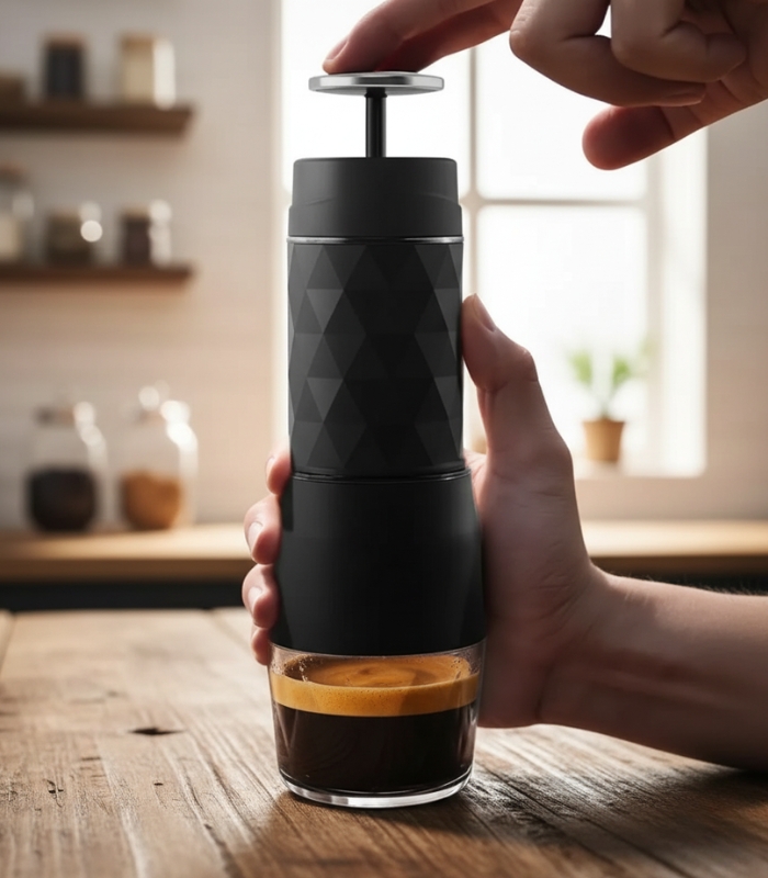 Enjoy rich espresso anywhere with our Portable Manual Espresso Maker. This compact, hand-powered coffee maker delivers authentic 18-bar pressure extraction without electricity or batteries, making it perfect for camping, hiking, travel, or office use. The innovative 3-in-1 design works with Nespresso-compatible capsules, Dolce Gusto-compatible capsules, and ground coffee, giving you complete brewing flexibility. Weighing just 420 grams and measuring 21.5cm tall, this lightweight espresso maker fits easily in your backpack and brews café-quality espresso in just 90 seconds.