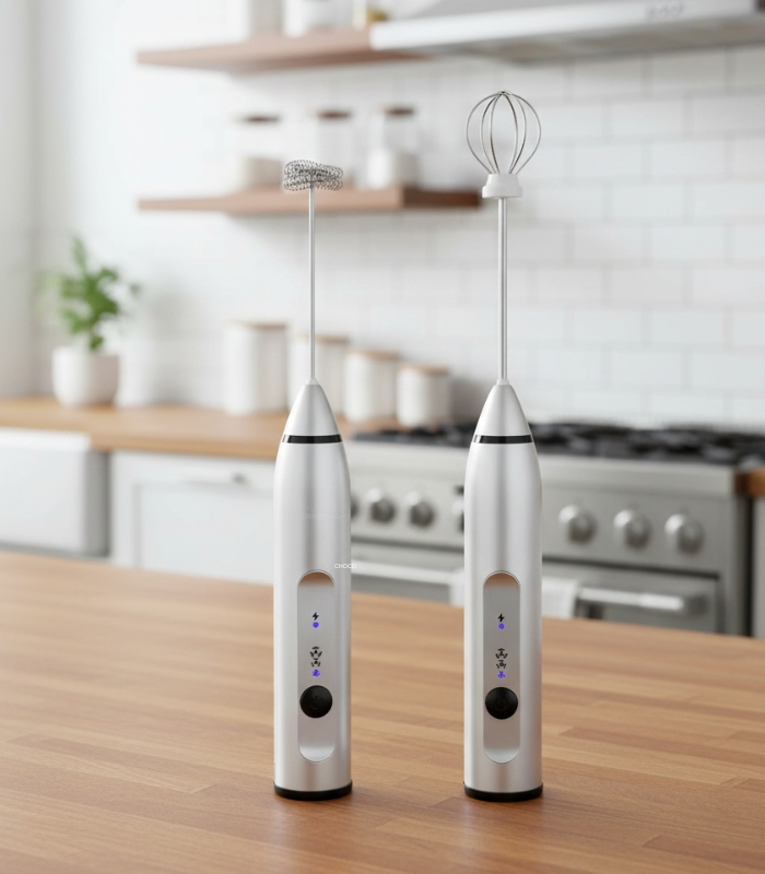 • Dual Whisk Attachments: Includes a double-layer whisk head optimized for milk frothing and a single whisk head designed for whisking eggs and mixing batters.