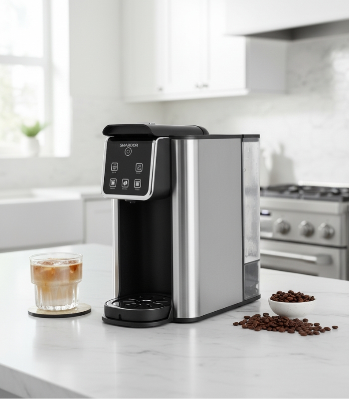 The  single-serve coffee maker brews K-Cup capsules, ground coffee, and loose tea through a touchscreen control panel offering size, bold, and over-ice settings. The 1500W heating system delivers hot or iced beverages from the 1.5-liter transparent water tank, while the removable drip tray accommodates various cup sizes. At 29cm tall and 16cm wide, it occupies minimal counter space yet brews up to 10 cups from a single water fill. The stainless steel construction and automatic shutoff provide durability and safety, making it suitable for home, office, or dorm use with multiple brewing preferences in one compact machine.