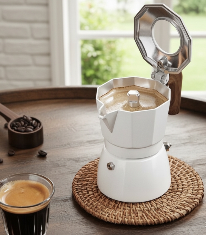 Stovetop Moka Pot with Double-Valve Pressure System