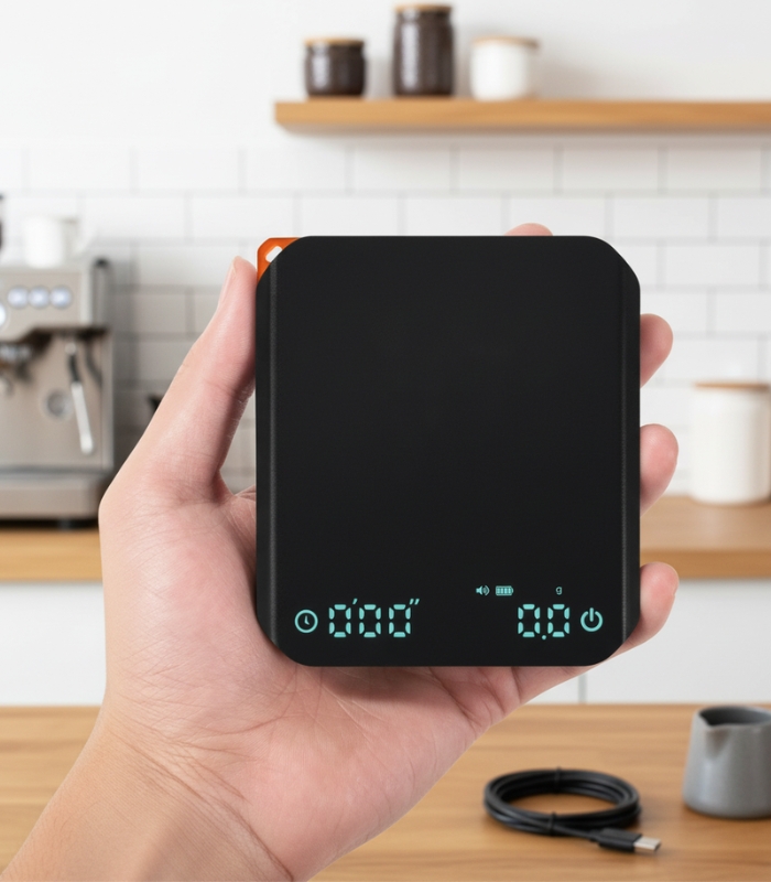 Brew perfect coffee every time with our Digital Coffee Scale with Timer. Designed specifically for coffee enthusiasts, this pocket-sized scale combines precision weighing with built-in timer modes for pour-over, espresso, and manual brewing. The 0.1g accuracy ensures consistent coffee-to-water ratios, while the rechargeable USB-C design eliminates the need for batteries. Compact enough to fit in your palm yet powerful enough for professional brewing, this scale is your essential companion for crafting exceptional coffee at home or on the go.